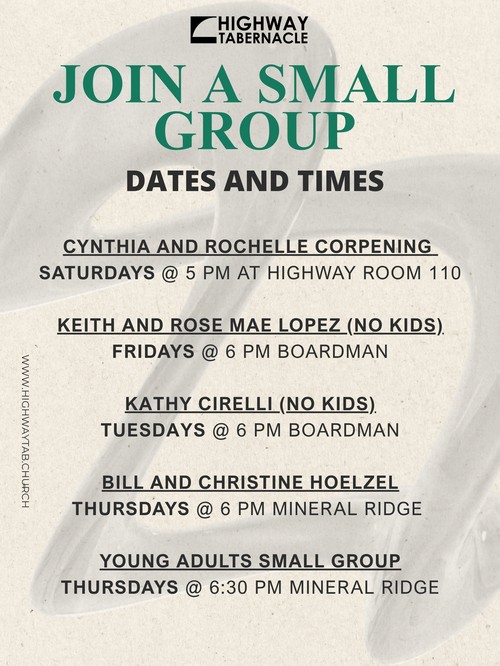 We will talk about our beliefs, the importance of Baptism in water and Baptism in the Holy Spirit, and learn more about Highway Tabernacle! Let us know if you can make it!